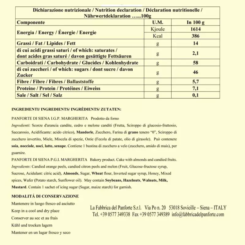 PANFORTE DI SIENA IGP MARGHERITA 100g